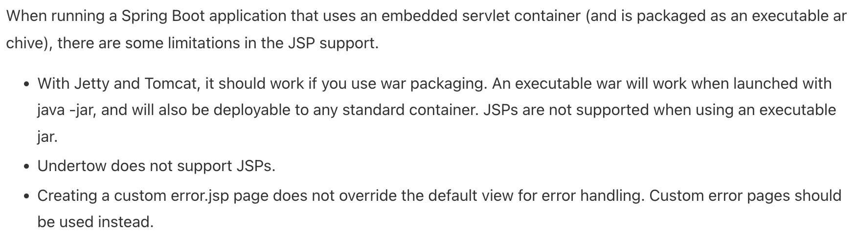 [Spring Boot]JSP 제약사항